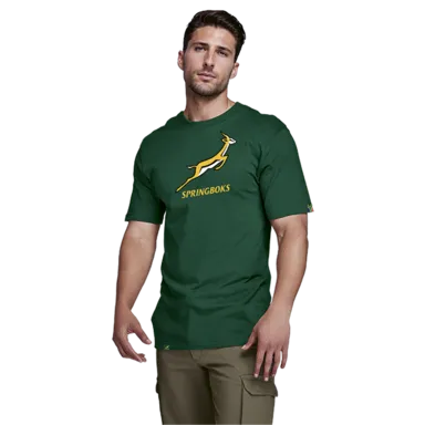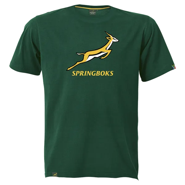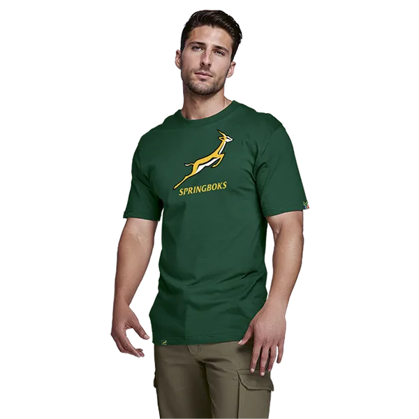 Stay stylish and show your support for the Springboks with this 160g Single Jersey Short Sleeve Graphic Tee. Made from 100% cotton, it features a screen printed logo on the chest and a regular easy fit design. Available in Barron or Bottle colors.