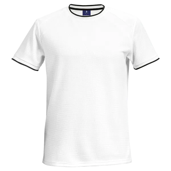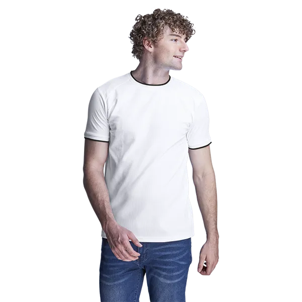 Upgrade your wardrobe with our 175g Ringer T-Shirt Polyester Eyelet. Featuring a sporty slim fit design and stylish details, this shirt is perfect for any casual occasion. Available in Black, Navy, Red, Royal, and White.