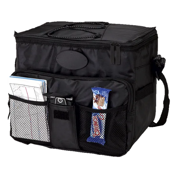 Keep your drinks cold on-the-go with this 18 Can Cooler featuring 2 front mesh pockets. With a zippered main compartment and adjustable shoulder strap, it’s perfect for picnics or beach days.