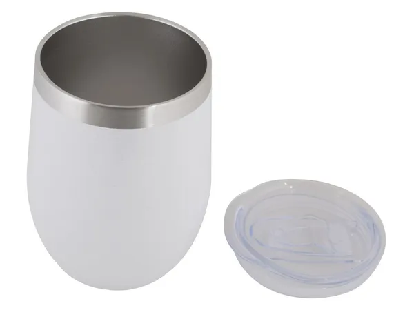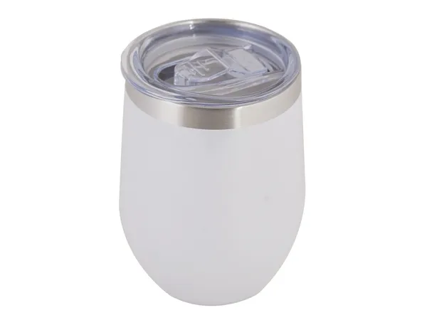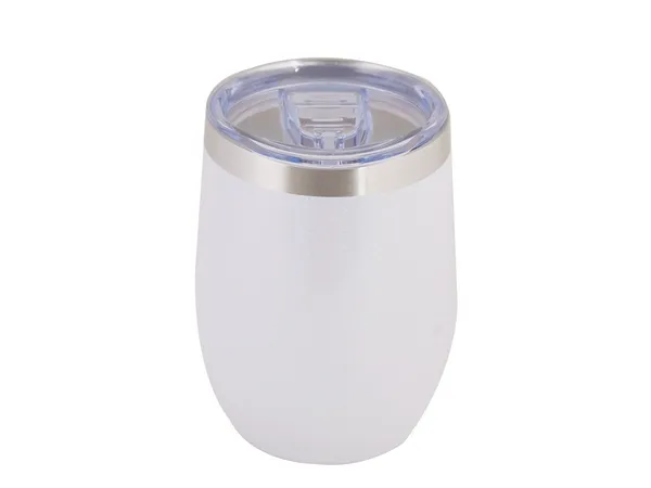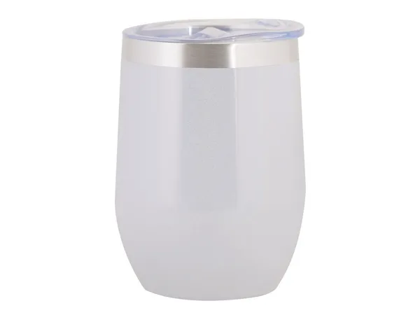 Capacity: 340ml. The glitter finish, adds a trendy and eye-catching touch. With double-wall insulation, it helps maintain hot or cold beverage temperatures, ideal for wine or coffee lovers. With a spill-proof clear lid with silicone slider.