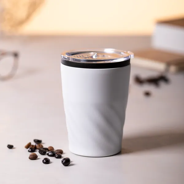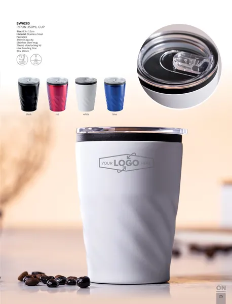 Introducing the sleek and stylish 350ml Ripon Cup, featuring a bevelled body design, transparent lid with doser, and available in various colors. Perfect for on-the-go hydration!