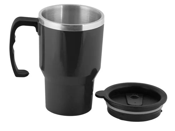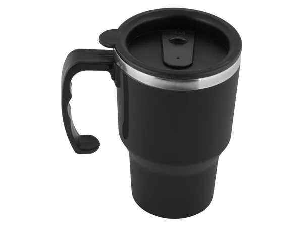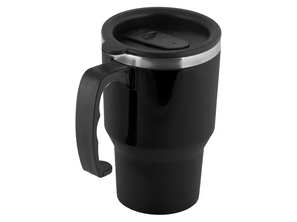 Capacity 400ml. Tapered base fits most car cup holders. Ergonomic handle acts as an easy grip on the go.
