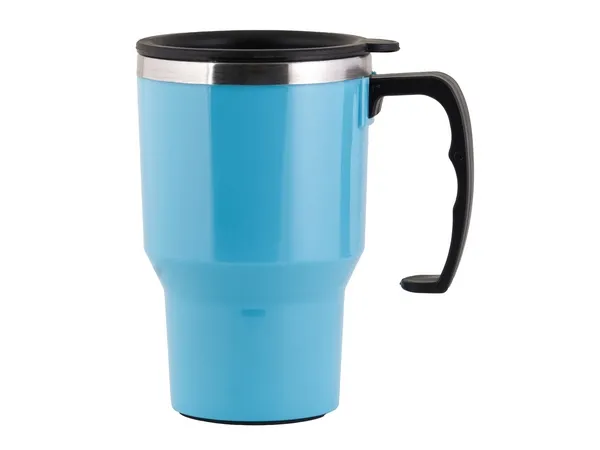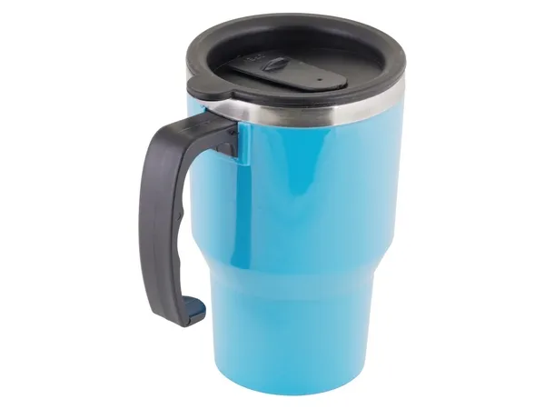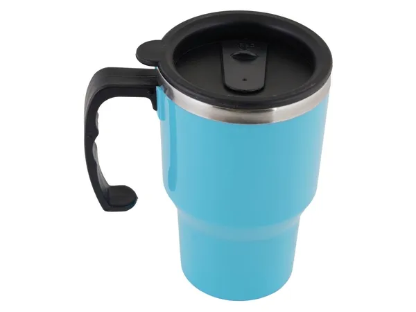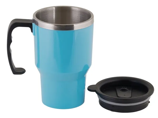 Capacity 400ml. Tapered base fits most car cup holders. Ergonomic handle acts as an easy grip on the go.