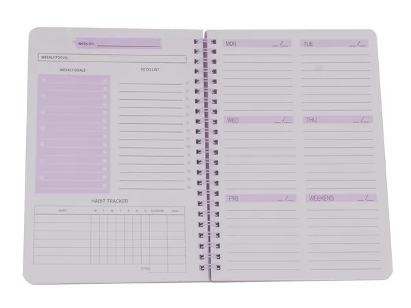 Get organized with our A5 Weekly Planner! Undated layout lets you start anytime. Includes space for notes, goals, to-do lists, and habit tracking. Gold spiral binding & durable PVC cover make it perfect for on-the-go planning.