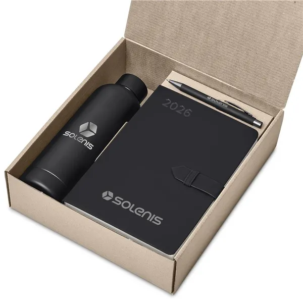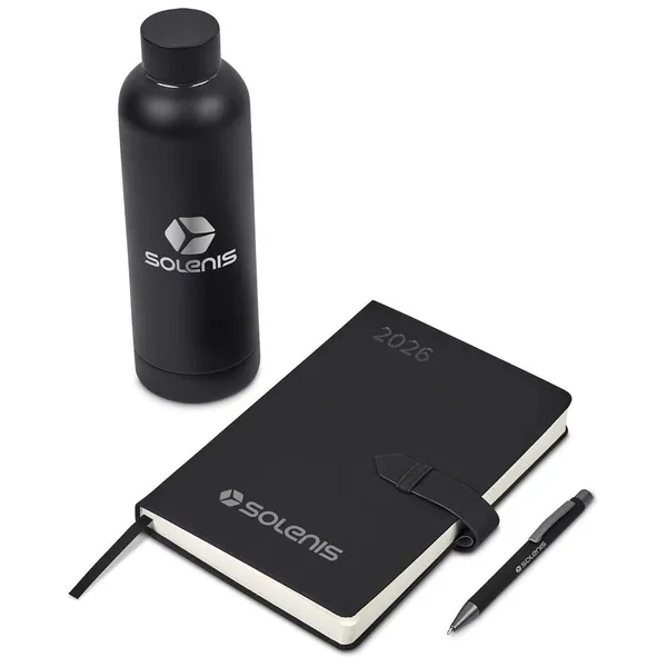 Make a fresh start to the new year with this practical gift set, featuring a thoughtfully paired trio: a premium diary, ball pen, and water bottle, combined in a Kraft presentation box, which not only looks impressive but is a convenient and practical option for transportation and delivery.Altitude Enterprise A5 2026 Diary (DS-AL-35-B)