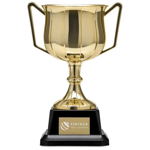 Celebrate achievements in style with this sleek plastic gold trophy. Featuring a polished gold finish, it sits proudly on a sturdy black stand for a classic contrast. The elegant gold plaque adds a premium touch, perfect for engraving names, titles, or special messages. Ideal for awards, competitions, and recognition events.
