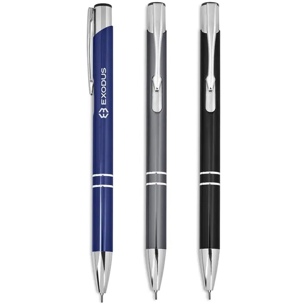 Aluminium mechanical pencil with a shiny anodised, coloured barrel and shiny chrome accents. Fitted with 0.7mm lead.