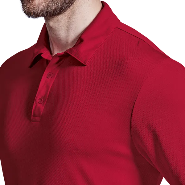 Elevate your golf game with the Atlas Golfer Mens shirt. Made from 100% polyester with moisture management, this stylish shirt features a textured honeycomb surface and fitted sleeves for optimal comfort and performance on the course. Available in Barron, Red, Navy, and Black colors.