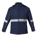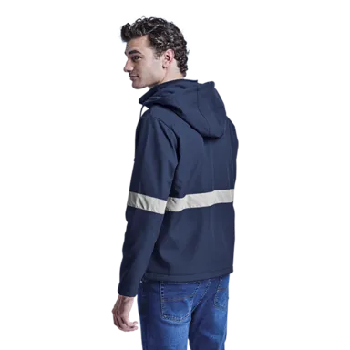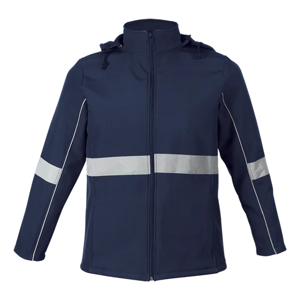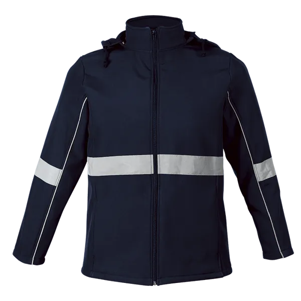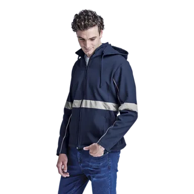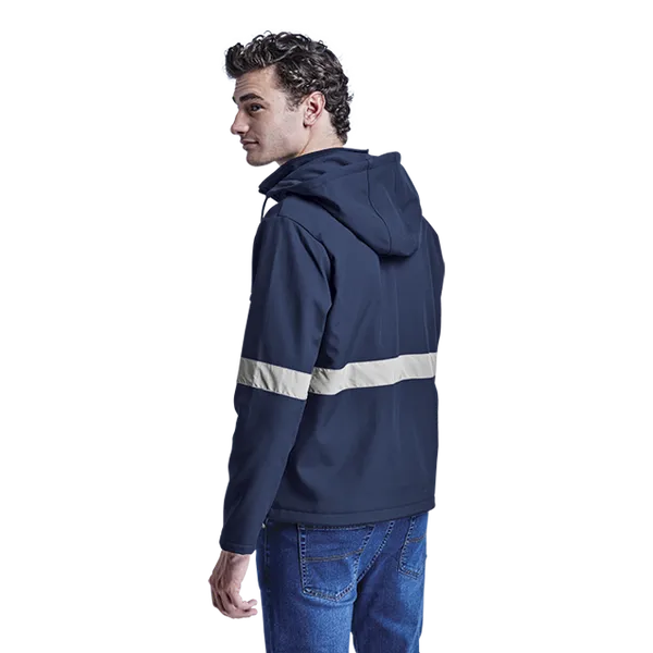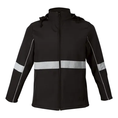 Stay safe and stylish with the Axis Soft Shell Reflective Jacket. Featuring a funnel collar, fitted sleeves with reflective print detail, and front zip pockets. Perfect for outdoor activities day or night.