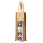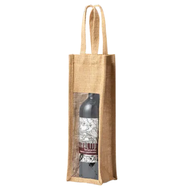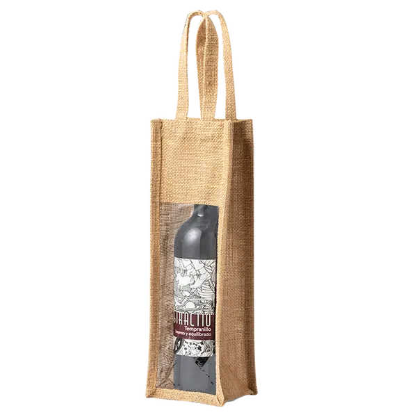 Introducing Bag Holden: a stylish and eco-friendly wine bottle jute bag with a transparent window. Perfect for gifts or retail, SMETA certified.