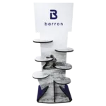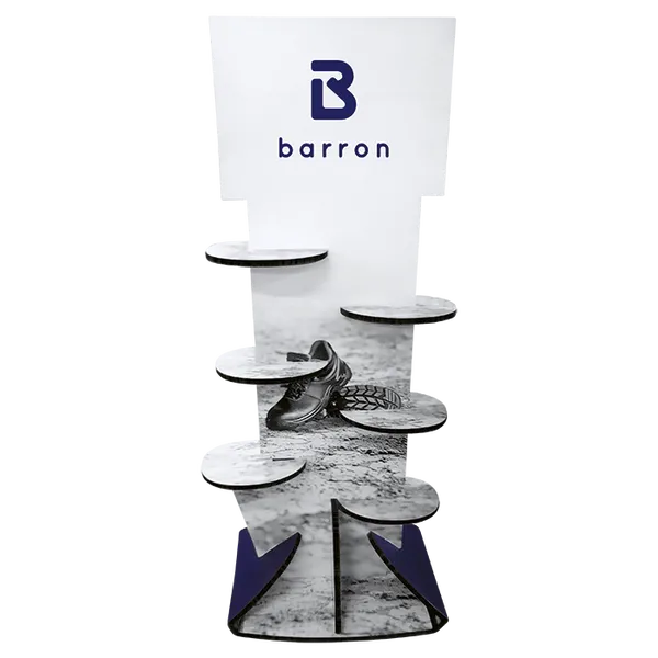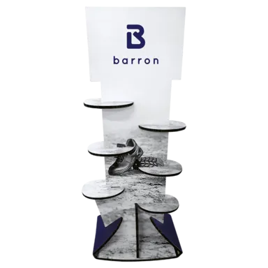 Display your shoe collection in style with the Barron 6 Level Shoe Display Stand. Zund cut for precision, this stand features six double-sided shelves for optimal 3D viewing. Perfect for showcasing both men’s and women’s footwear.