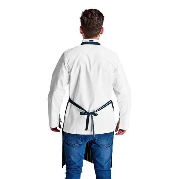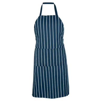 Stay stylish and protected in the kitchen with Barron Butcher’s Apron. Made from 100% cotton, this apron features one pocket compartment and is available in Navy/White or Black/White. One size fits all. Proudly local and ISO certified.