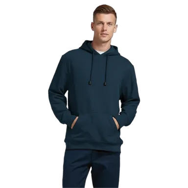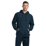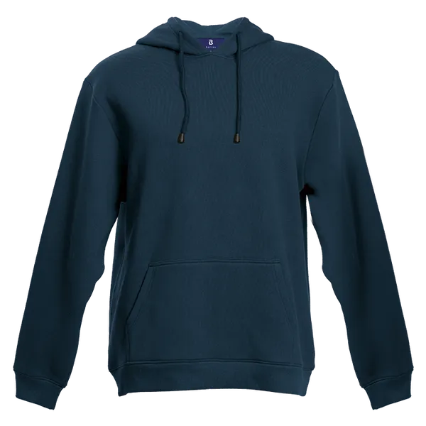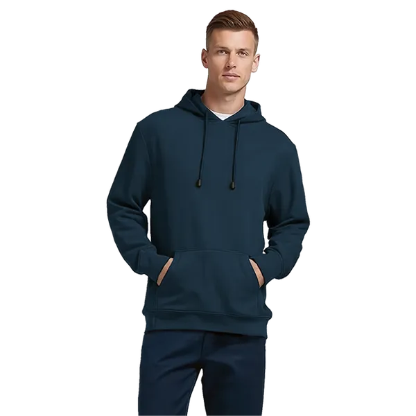 - Front kangaroo pocket with double needle stitching