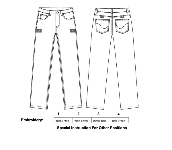 - Front and back pockets with rivets