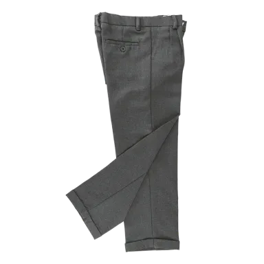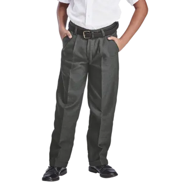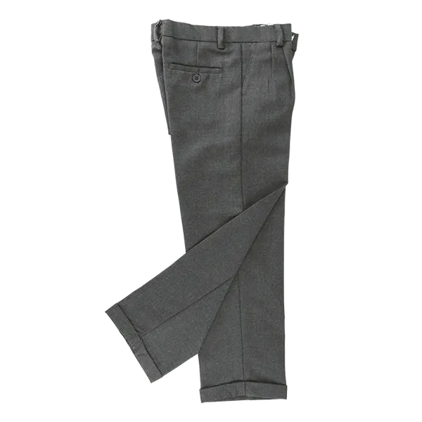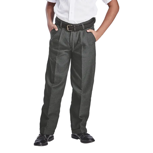 Durable and stylish Boys School Trousers in Grey Melange. Features include front pleats, back darts, and a constructed waistband for a smart look.