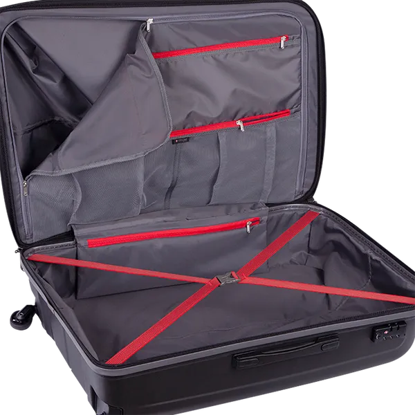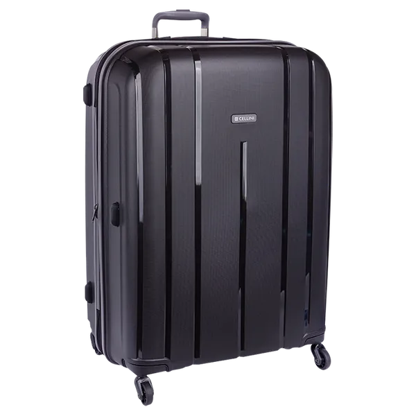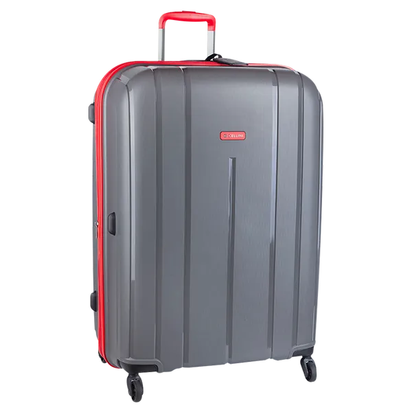 Travel in style with the Cellini Qwest Large 4-Wheel Trolley. This hard shell case has a spacious 131L capacity, Xpander feature, TSA lock, and comes with a 10-year warranty. Available in black, grey, or red.