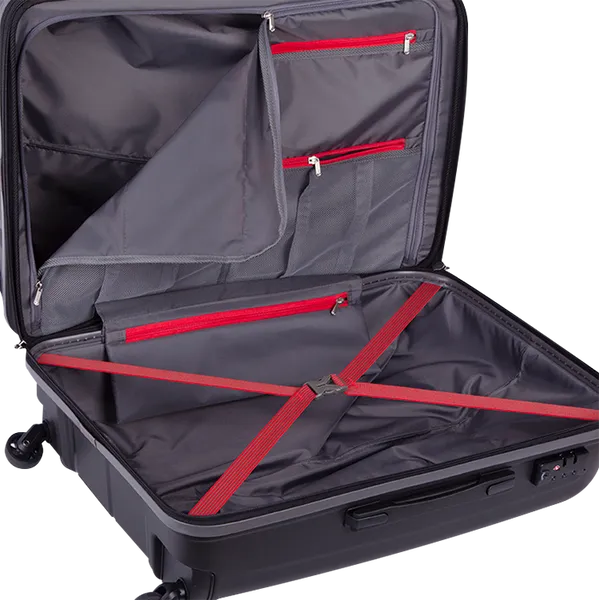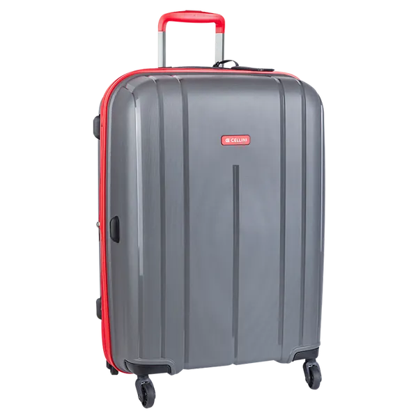 Travel in style with the Cellini Qwest Medium 4-Wheel Trolley. This hard shell case is spacious, durable, and comes with a 10-year warranty. Perfect for any adventure!