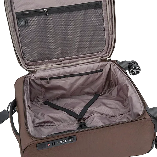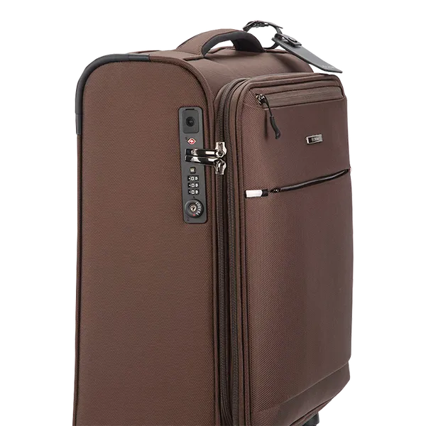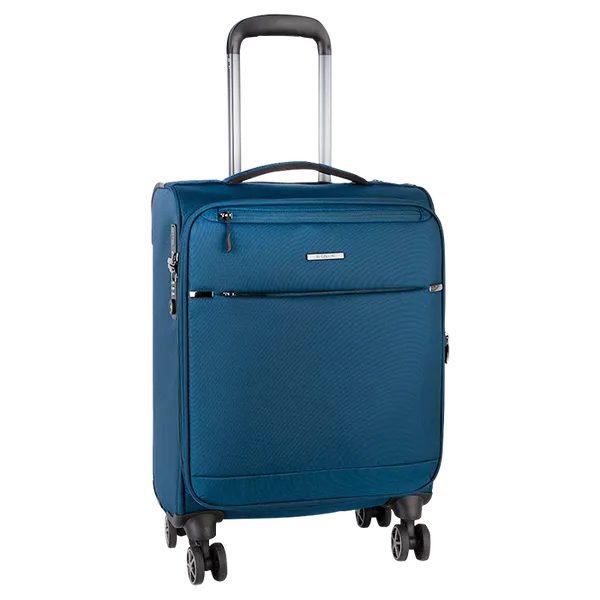 Travel in style with the Cellini Smart 4-Wheel Carry On Trolley. This sleek and durable trolley features a soft shell, integrated TSA lock, and comes with a 10-year warranty. Available in black, brown, or blue.