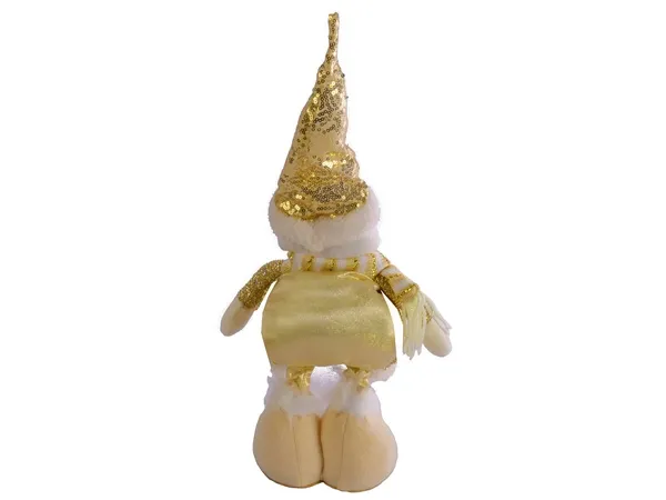 This festive decoration combines charm with sturdiness. Dressed in a sparkling gold outfit and featuring a cheerful face, this snowman is the perfect addition to your holiday decor. One of its standout features is its Pinocchio-style legs. When fully extended, the snowman reaches an impressive height of 65cm, adding a whimsical touch to your festive setup. When condensed, it stands at 47cm, allowing you to adjust the height based on your display needs. The flexible design means you can easily position it on a mantel, under the tree, or by the entrance to welcome guests.