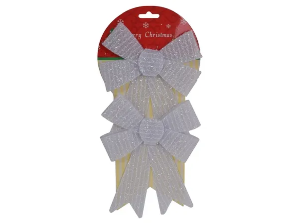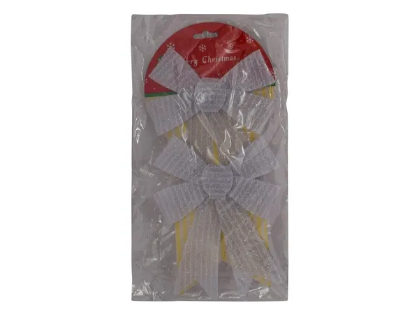 Get ready for the holiday season with this festive glitter bow set, perfect for adding a touch of sparkle to your decorations. These bows are lightweight and reusable, making them an excellent addition to your Christmas tree, gift wrapping, or holiday crafts. Available in a shimmering glitter silver finish, these bows will make your holiday decor stand out.