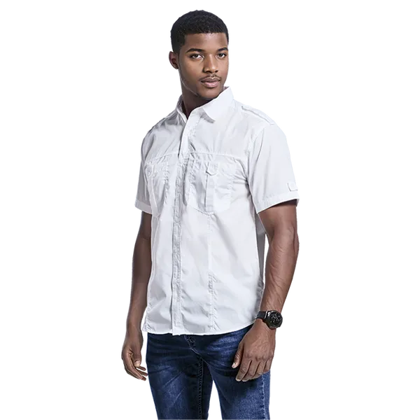Elevate your style with our City Shirt Mens. Featuring a raised collar, front panels, and box pleat pocket, this shirt is perfect for any occasion. Made from lightweight Poly Cotton fabric, it’s great for promotions, outdoors, and everyday use. Available in multiple colors.