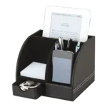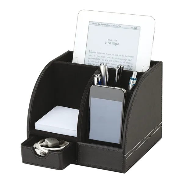 Stay organized and stylish with the Barron Executive Desk Box. Featuring a sleek leatherette finish, storage drawer, memo pad, and more. Perfect for any professional setting.