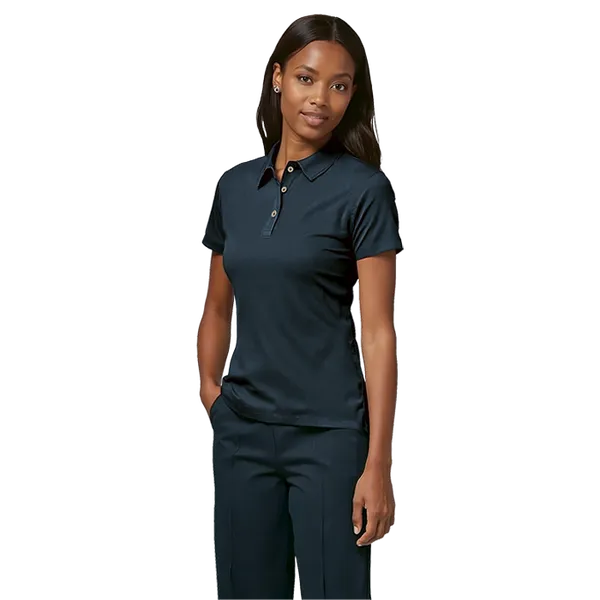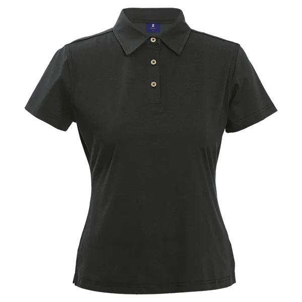 Elevate your golf game with the Executive Mercerised Golfer for Ladies. Made from high-end 100% mercerised cotton, this top features a structured collar, metal-look buttons, and a premium hand feel. Available in black or navy.
