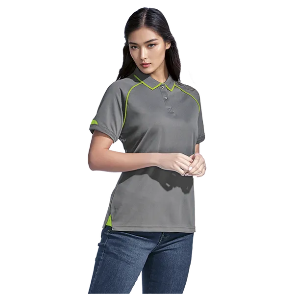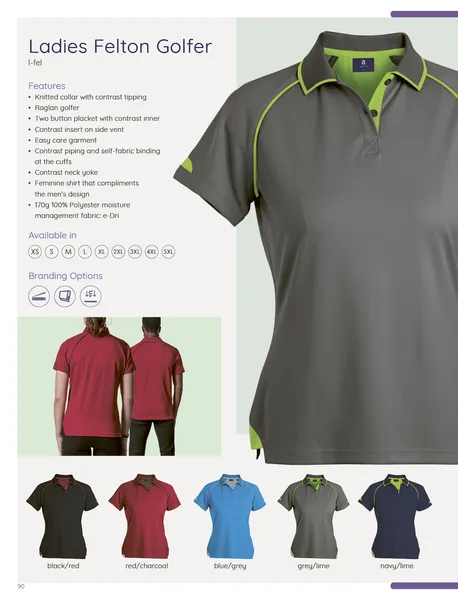 Elevate your golf game with the Felton Golfer Ladies shirt. Made from moisture-wicking fabric, this stylish top features a knitted collar, raglan design, and contrast details for a feminine touch. Perfect for on or off the course.