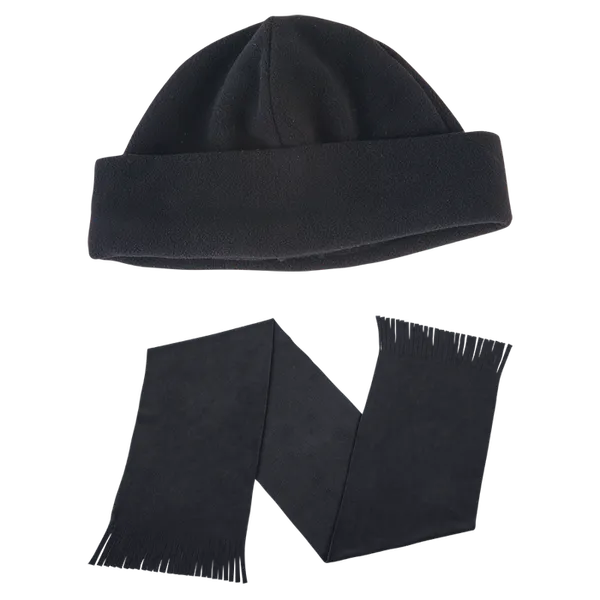 Stay warm and stylish with our Glacier Scarf and Beanie Set. Made from cozy polar fleece, this set is perfect for chilly days. Available in classic colors for both men and women.