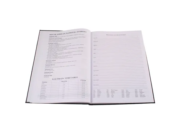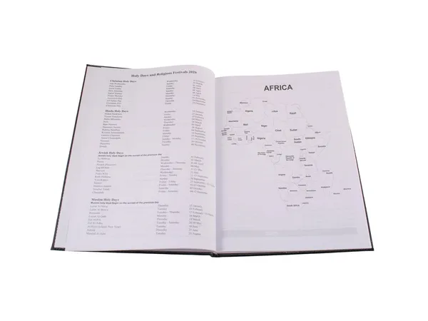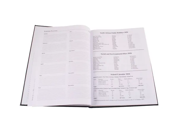 Daily Inspirational Quotes. Page-A-Day. With Satin Bookmark.Inner pages Include: Public Holidays, Social and Environmental Days, Holy Days & Religious Festivals, School Calendar, Africa Map, Emergency Numbers, International Dialling Codes, Web Directory, SA National Symbols, Gautrain Timetable