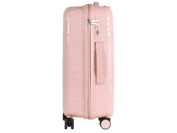 With an ultra-durable polypropylene shell, this luggage bag is lightweight yet sturdy. Comes with an integrated TSA Combination Lock, 4 x multi-directional wheels, an aluminium telescopic handle, expandable zipper design and a side and top handle for easy lifting