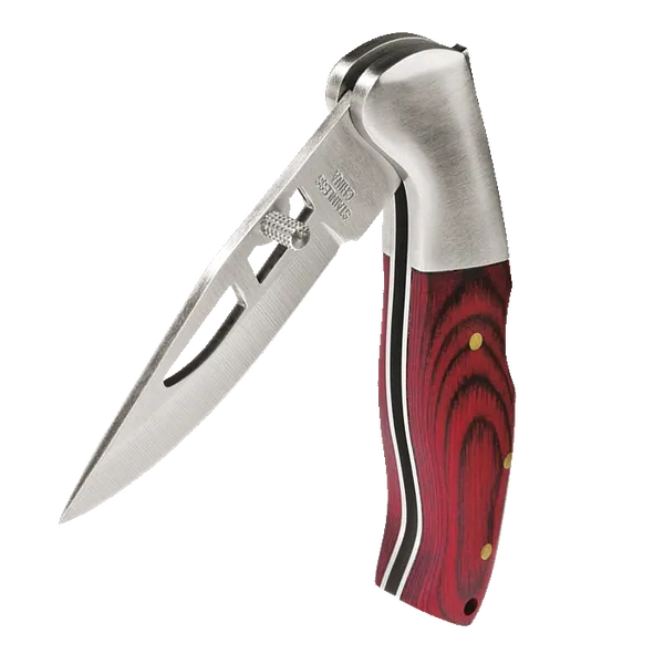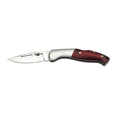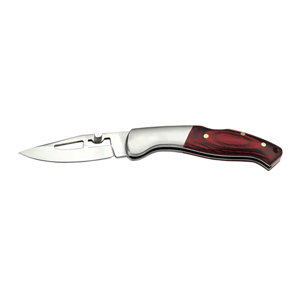 The Lockback Wood Handled Knife is a versatile and durable tool with a sleek design. Featuring a 6.5cm steel blade, wood inlay handle, and one-handed opening function, this knife is perfect for any task.