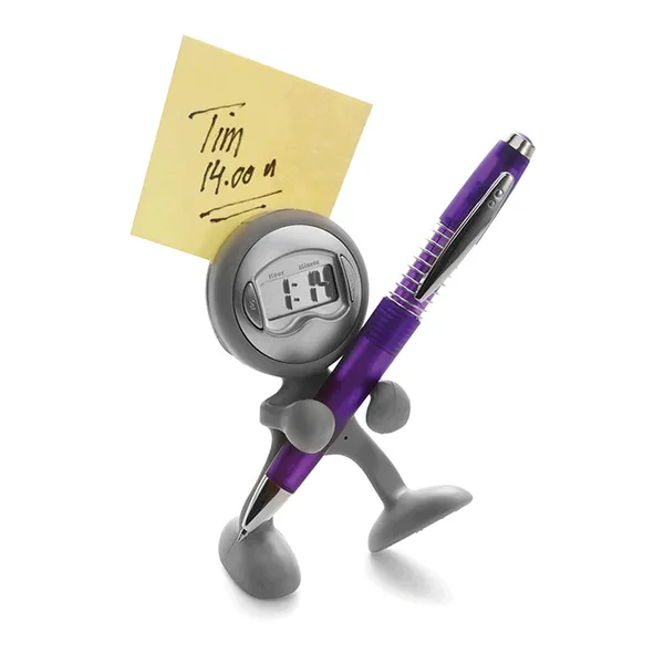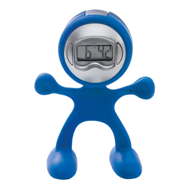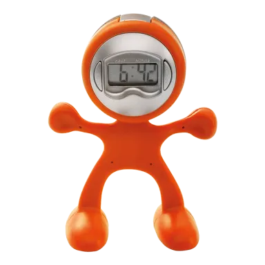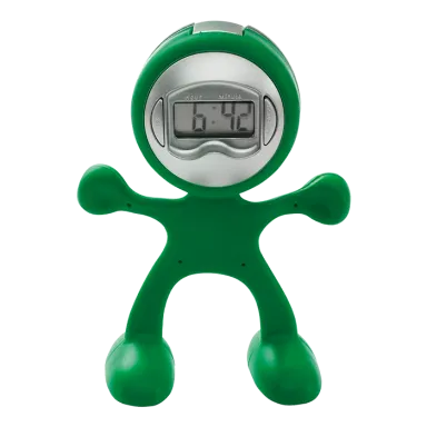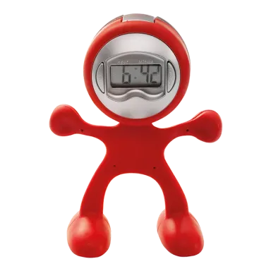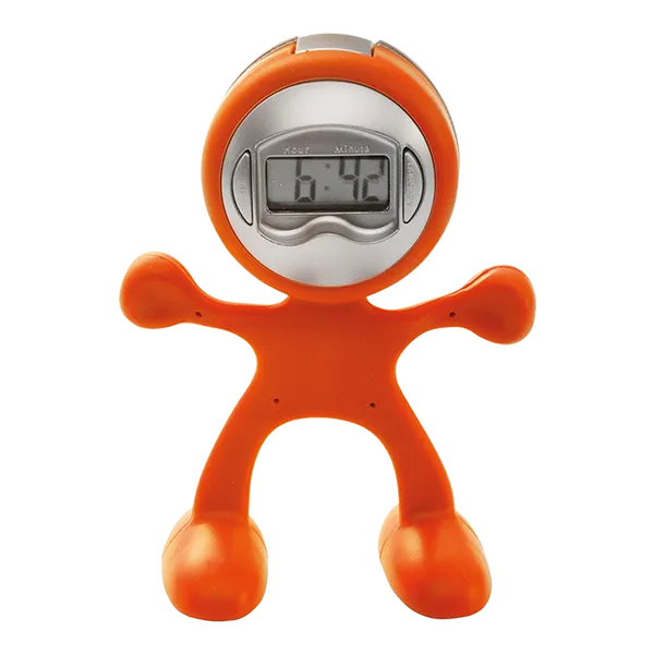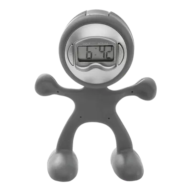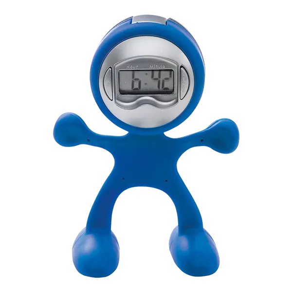 Wake up in style with this Man Shaped Alarm Clock with Memo Holder. Made of durable ABS construction, it features a unique design and comes in various colors. Perfect for keeping you on schedule while also holding important notes.