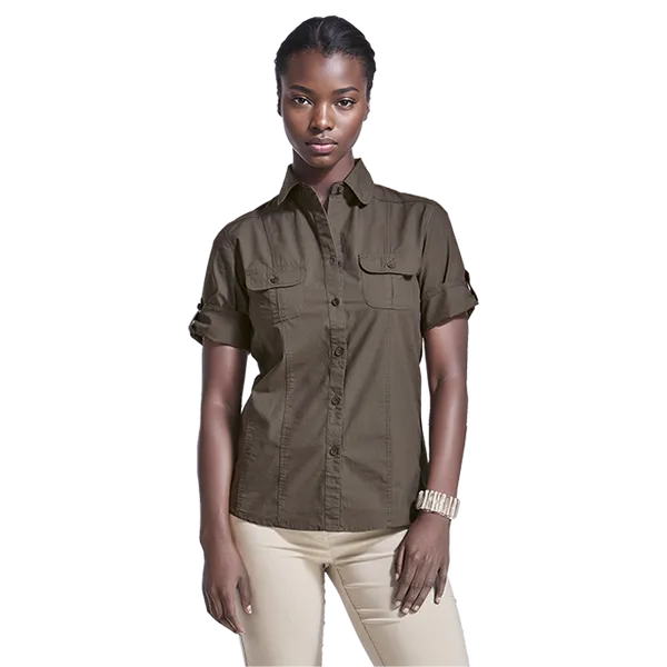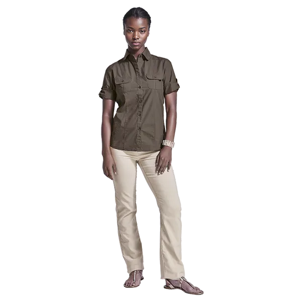 Get ready for your next outdoor adventure in style with the Outback Blouse Ladies. Featuring a flattering fit, roll-up sleeves, and two front pockets, this 100% cotton blouse is perfect for any outdoor activity. Available in multiple colors to suit your style.