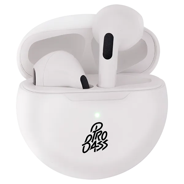Experience the ultimate sound quality with Pro Bass Future Series True Wireless Earphones. These Bluetooth earphones in white offer powerful bass and a comfortable fit for all genders.