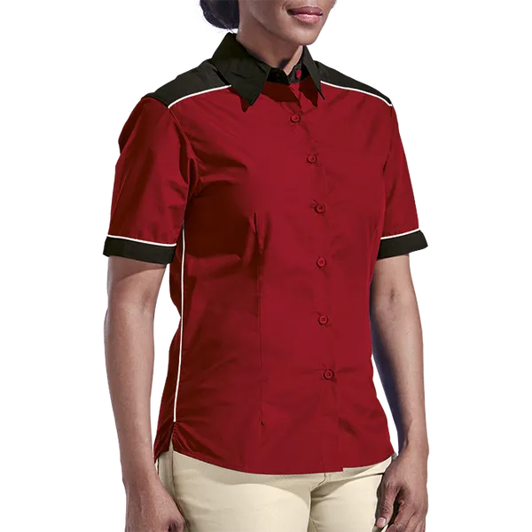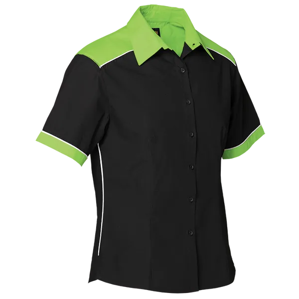 Rev up your style with the Racing Pit Shirt Ladies! With contrast panels, darts for a tapered fit, and stylish piping, this shirt is perfect for any racing enthusiast. Available in multiple colors.
