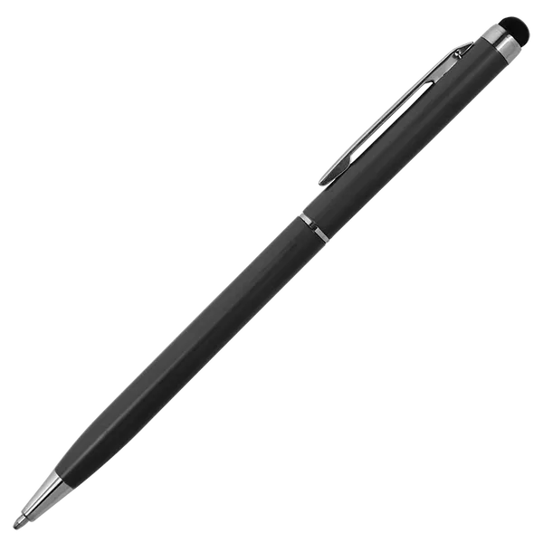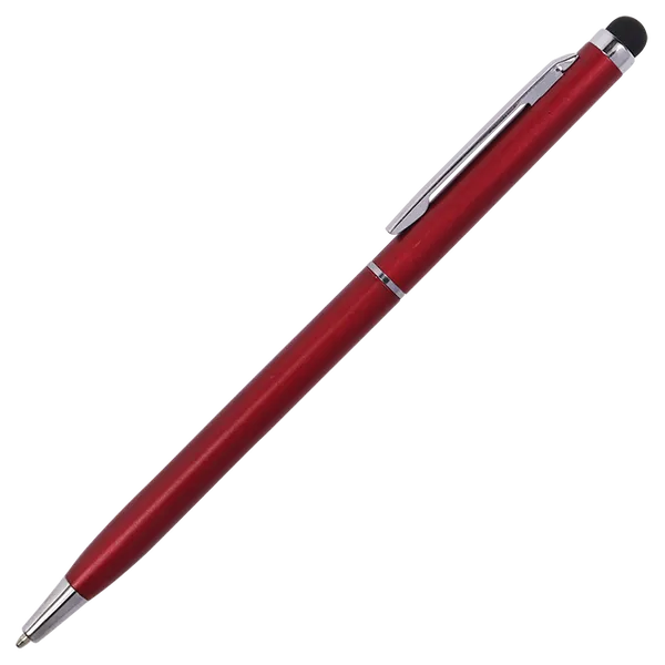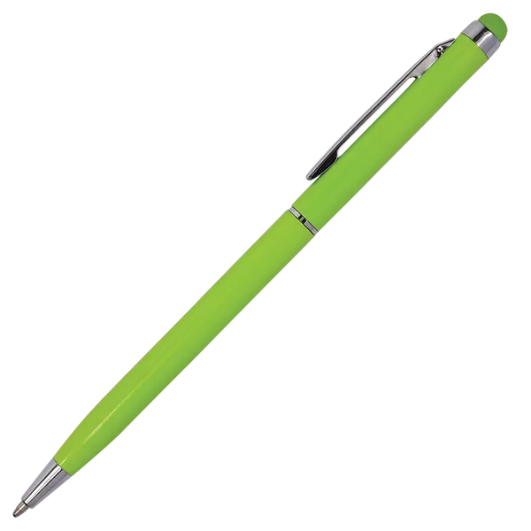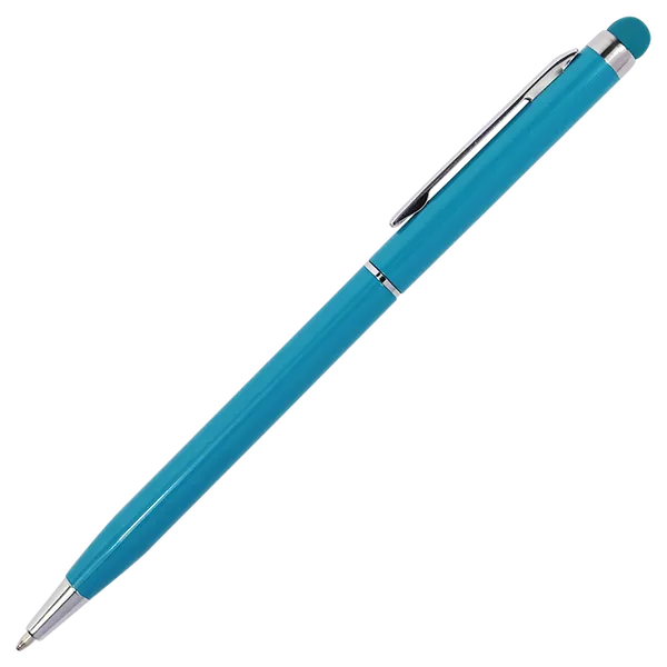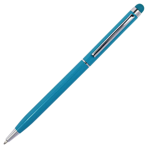 Sleek and stylish, the Slim Elegant Ballpoint Pen with Stylus is perfect for any tech-savvy individual. With a twist action mechanism and matching colored stylus, this aluminum pen is both functional and fashionable. Perfect for use on your iPad, iPhone, or other touchscreen devices.