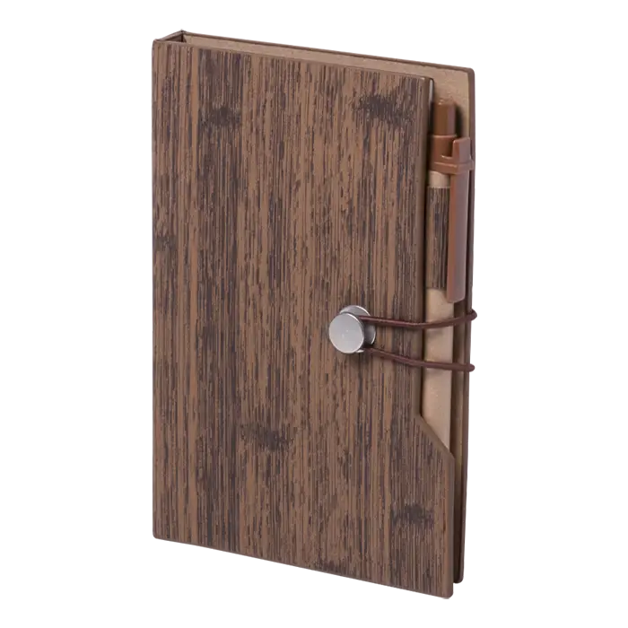 Introducing the Sticky Notepad Rasmor – a stylish and practical notepad with a wood-like design, included recycled cardboard ball pen, and built-in ball pen holder. Perfect for on-the-go note-taking! Available in Barron, Brown, Red, Blue, or Grey.