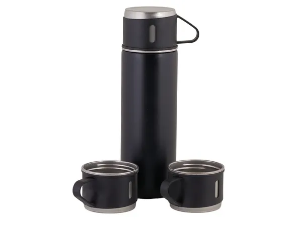 500ml Flask has double-wall stainless steel insulation, keeping beverages hot and cold. With a Hermetic vacuum seal, ensuring perfect waterproofing and an odourless inner lining. Includes 3 x 120ml matching mini mugs, perfect for sharing coffee, tea or a cold beverage, that also fit on the flask as a lid.