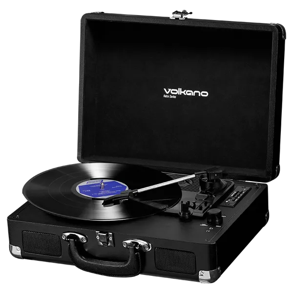 Experience the nostalgia of vinyl with Volkano Retro Series Portable Vinyl Player. Features FM radio, USB/SD card reader, and 3 speed modes. Perfect for music lovers on-the-go!