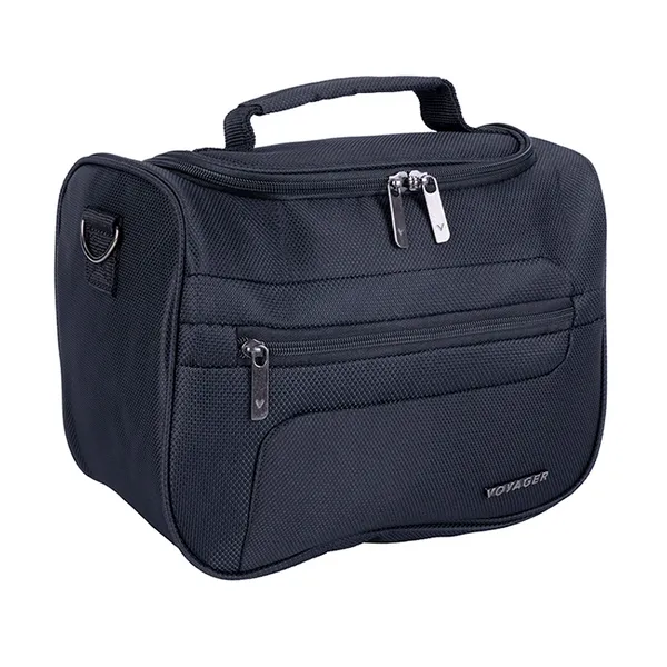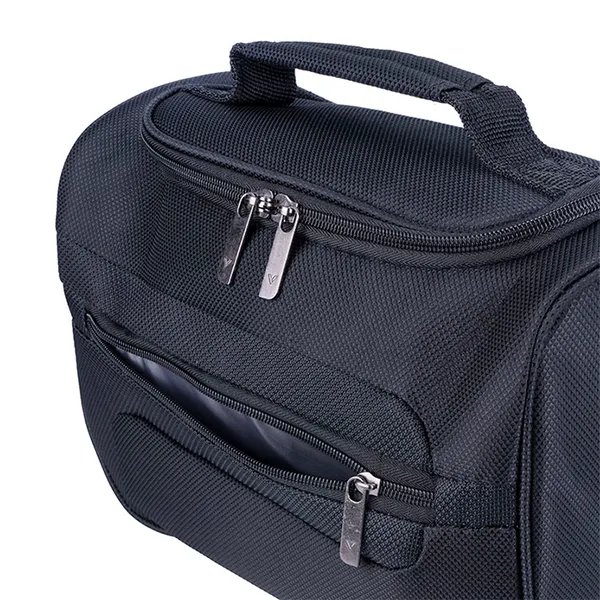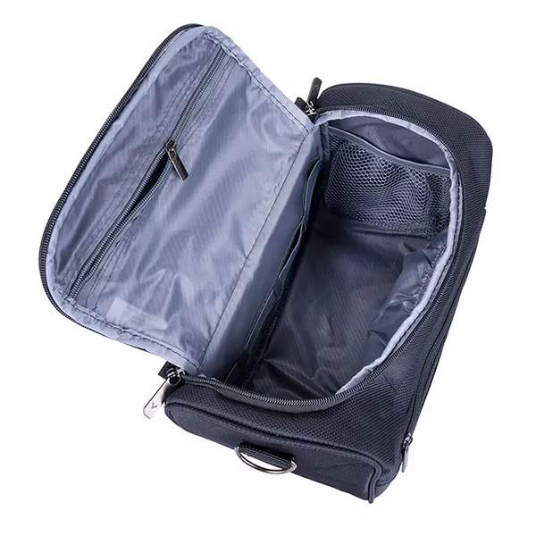 - Large lockable main compartment with elasticated straps to hold 4 x100-ml bottles in place
