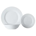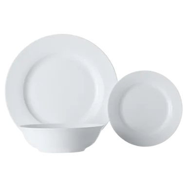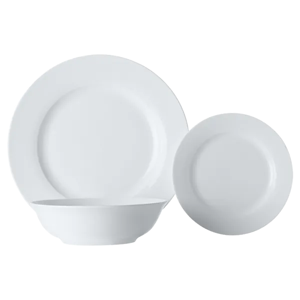 Elevate your dining experience with the White Basics European Rim Dinner Set. This 12-piece set includes everything you need for a stylish and functional table setting. Microwave, oven, dishwasher, and freezer safe for convenience. Perfect for everyday meals or special occasions.
