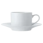 Elevate your tea or coffee experience with this versatile White Basics Straight Cup and Saucer set. Microwave, oven, dishwasher, and freezer safe for convenience. Perfect for everyday use or special occasions.