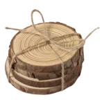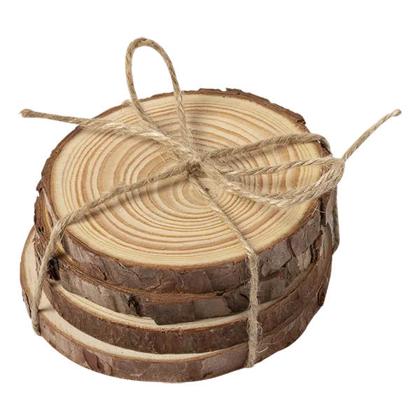 Elevate your table decor with the Yantic Coaster Set. Made from natural pine wood, this set includes 4 pieces with a thickness of 1 cm and diameters between 8-10 cm. Perfect for any home or office setting. SMETA certified and available in Barron color. Minimum order quantity of 25 units.