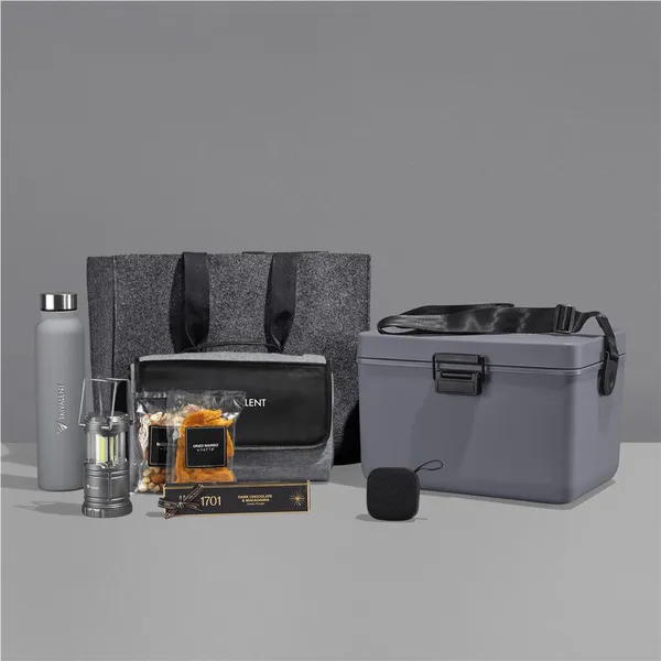 The Yatta range of hampers is expertly crafted to provide a delightful experience with a curated selection of premium items. Elegantly presented in a luxury 12L cooler box. This hamper is further encased in a large size durable Dark Grey RPET felt gift bag.